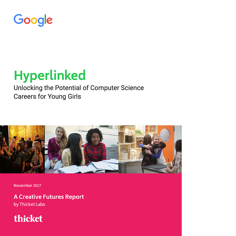 In an innovative approach to combat the gender disparity in tech, Google financed "Hyperlinked," a web series that aired on YouTube Premium that was aimed at young audiences, particularly girls. Needing empirical evidence to gauge the impact of "their investment, Google partnered with Thicket Labs to evaluate the series' effectiveness in changing perceptions and inspiring interest in computer science among its viewers.